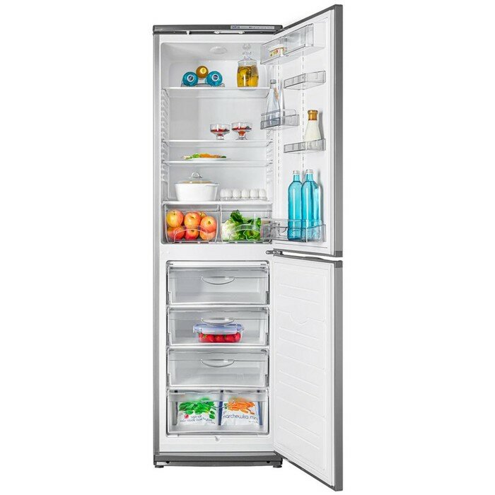 Холодильник ATLANT Black имеет общий объем 384 литра, из которых 225 литров приходится на холодильную камеру, а 139 литров на морозильную. Благодаря четырем полкам и четырем полкам на двери холодильной камеры вы сможете разместить все продукты удобным образом и легко найти нужные вещи. В морозильной камере есть один ящик и четыре ящика для более организованного хранения замороженных продуктов.