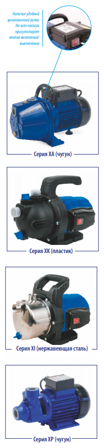 Садовые насосы для подачи чистой воды из колодцев, скважин, различных резервуаров в дом и для полива садовых участков.
