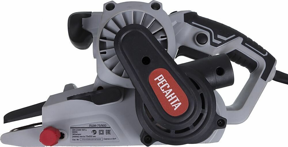 Ленточная шлифмашина Ресанта относится к классу инструмента с электрическим двигателем. Она состоит из корпуса, в основании которого находятся два ролика. На них надевается замкнутая лента с абразивной поверхностью. Один из роликов ведущий, второй служит для регулировки поперечного положения ленты. За счёт вращения ленты на большой скорости и движения инструмента по заготовке происходит снятие верхнего слоя материала.Преимущества Мощный электродвигатель обеспечивает стабильную работу инструмента под нагрузкой Оптимальная скорость ленты в 360 м/мин обеспечивает хорошую производительность, позволяя обрабатывать большие участки поверхности за короткий срок Выключатель с кнопкой фиксации в нажатом положении даёт возможность работать без постоянного нажатия на выключатель, что обеспечивает более лёгкую работу и меньшую усталость Наличие патрубка для сбора пыли обеспечивает комфортные условия работы с минимальным содержанием пыли в зоне работы Регулятор центровки ленты обеспечивает точное положение шлифовальной ленты на основании без перекосов, что даёт максимальную производительность и качество работы