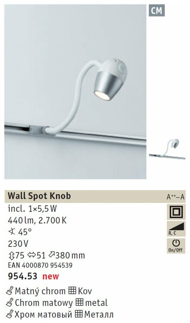 Трековый светильник Urail Cm 95453 - продукт известной компании Paulmann (Германия). Имеет максимальную мощность 5 Вт. Отлично подойдет для таких мест, как спальня, кухня. Впишется в интерьеры следующих стилей: хай-тек.