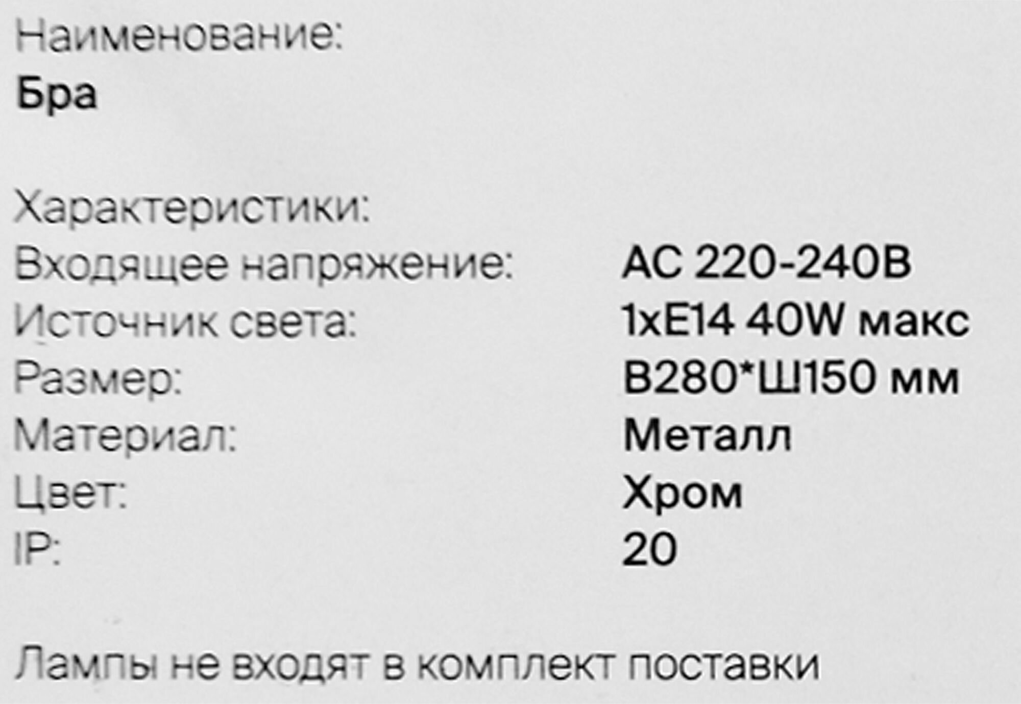 | Тип продукта | Светильник бра настенный |