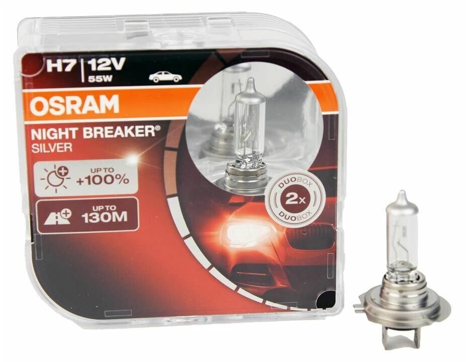 NIGHT BREAKER SILVER – яркая галогенная лампа OSRAM с оптимальным сроком службы. По сравнению с требованиями стандарта, она обеспечивает до 100% больше яркости, образуемый световой луч до 130 м длиннее.