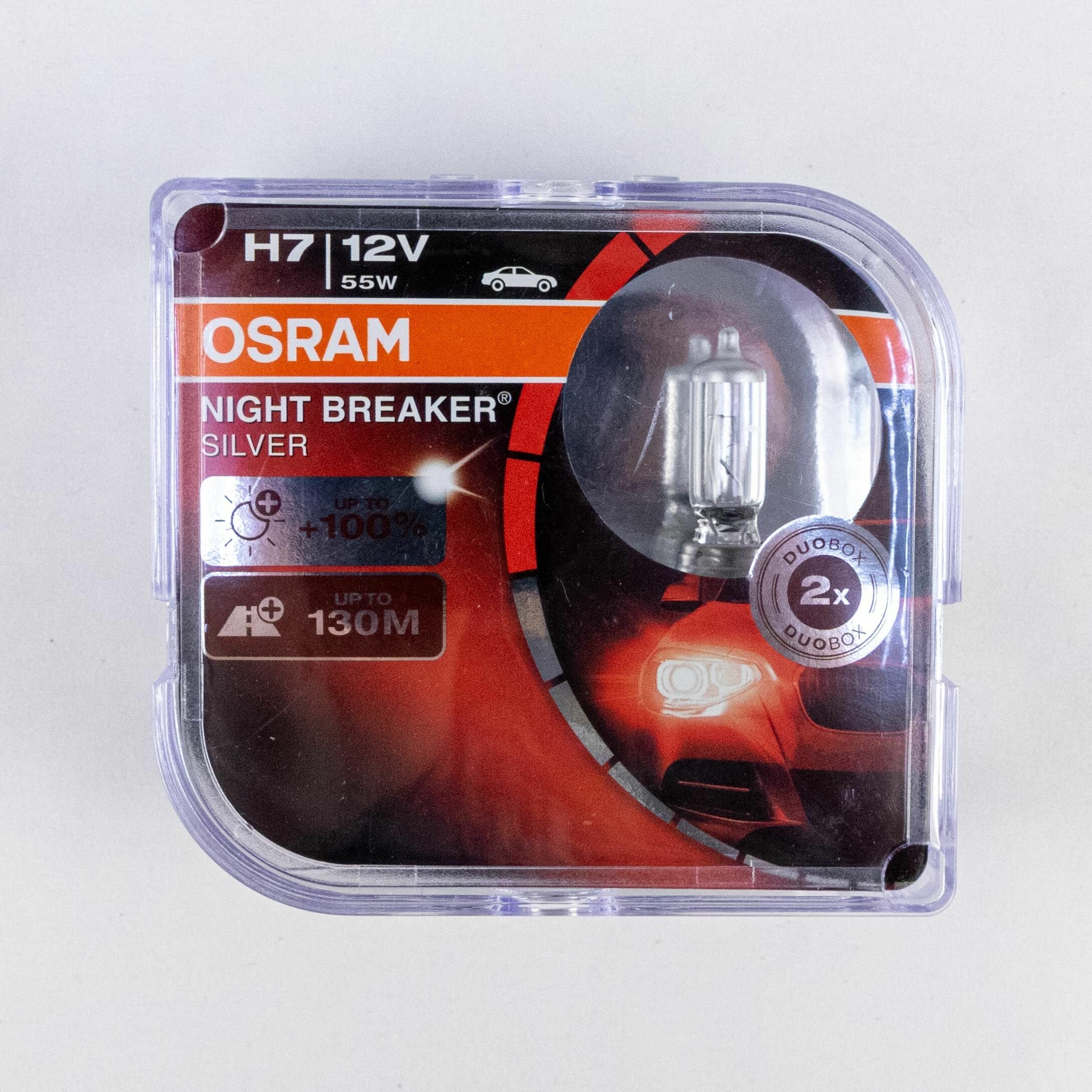 OSRAM H7 12V- 55W (PX26d) (+100% света+серебр.диз.) Night Breaker Silver 2шт (64210NBS-HCB)
