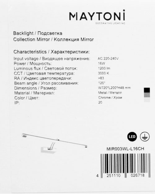 | Вид товара | Светильники для зеркал |