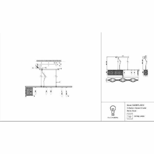 - Подвесная люстра хром с хрусталём Maytoni Dune DIA005PL-06CH