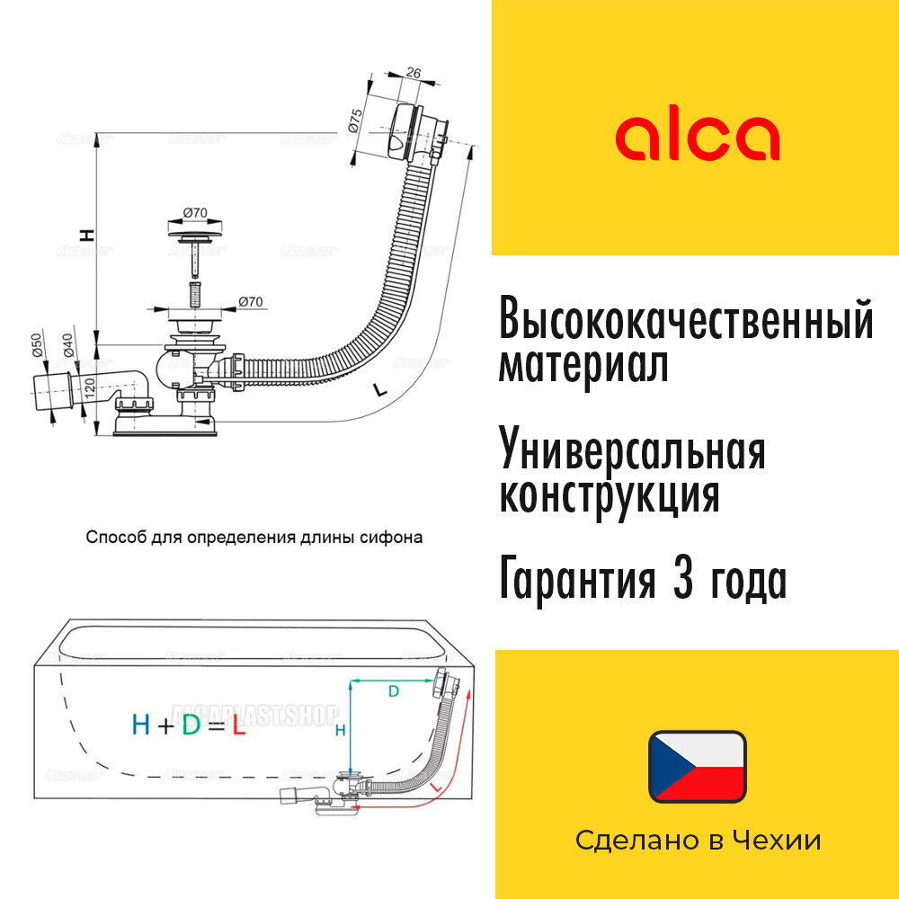 - Сифон полуавтомат для ванны Alca Plast 51CR