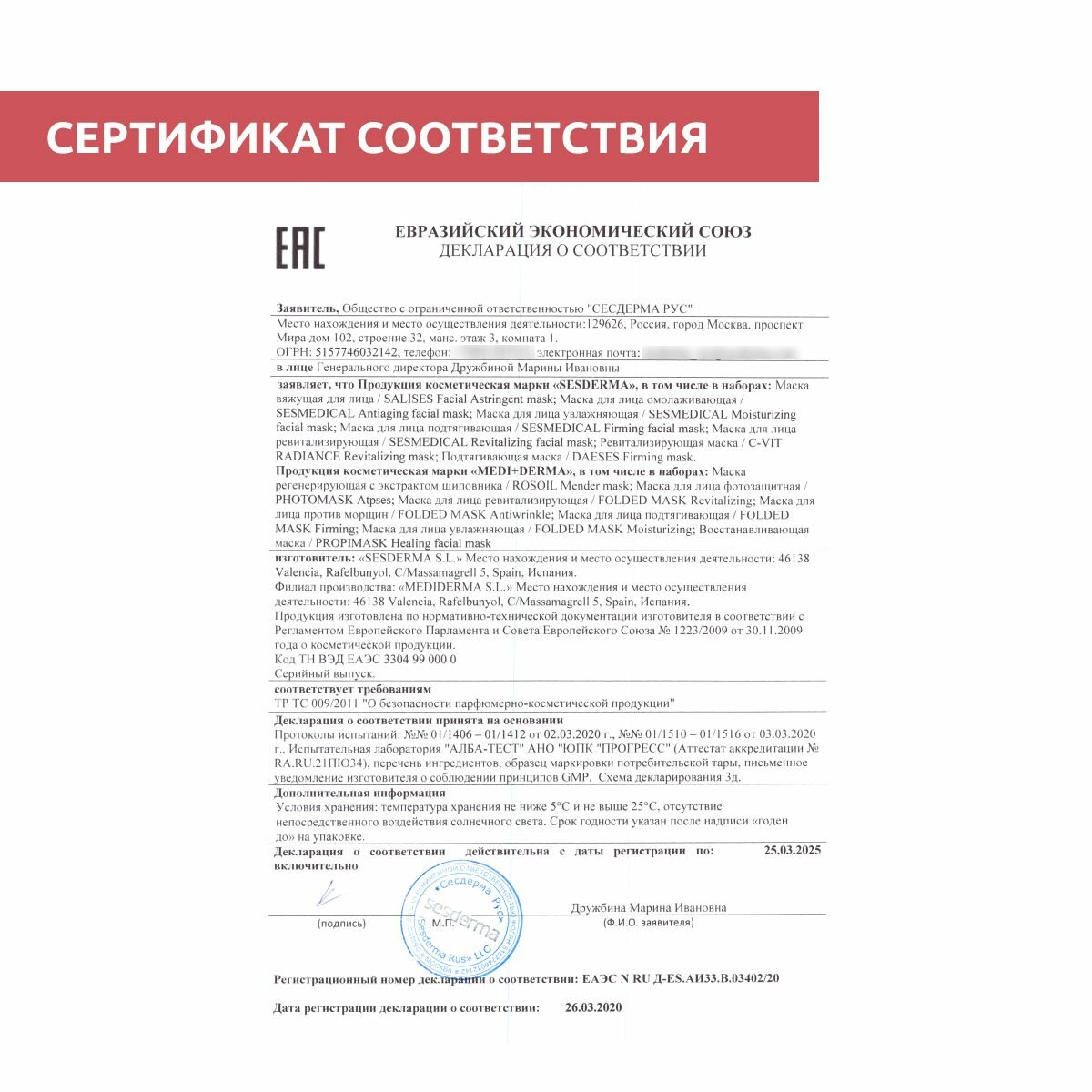| Фирма-производитель | SesDerma |