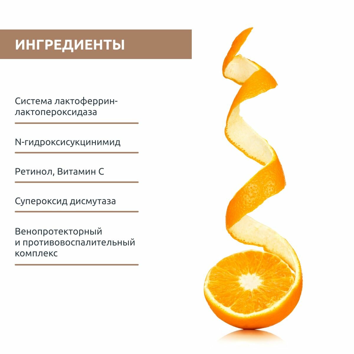 Активные компоненты: Лецитин, аскорбиновая кислота, экстракт коры конского каштана, экстракт листьев гинкго билоба, ГАГ, рутин, лактоферрин, супероксид дисмутаза, витамин Е, эскулин, ретинол, кверцетин, куркумин, лактопероксидаза.