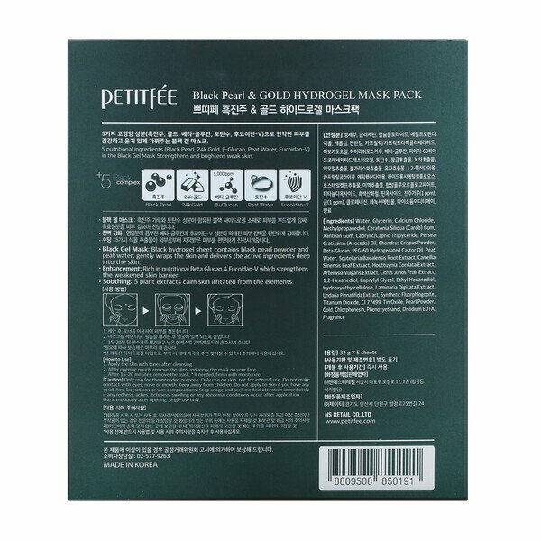 Petitfee Маска для лица гидрогелевая с черным жемчугом и золотом 32 г (Petitfee ) (850207)