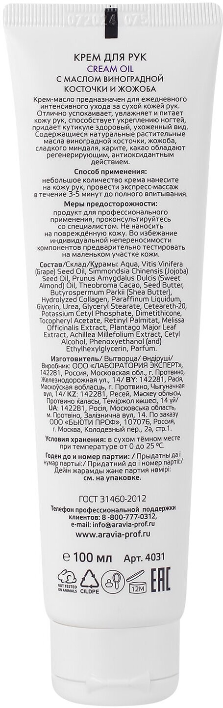 Aravia professional Крем для рук с маслом виноградной косточки и жожоба 550 мл (Aravia professional ) Cream Oil с маслом виноградной косточки и жожоба
