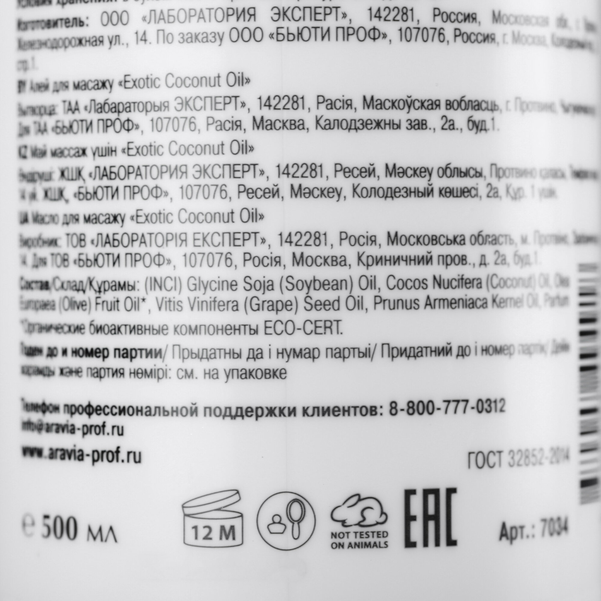 | Полное наименование | ARAVIA Organic Масло для расслабляющего массажа Exotic Coconut Oil, 500 мл |