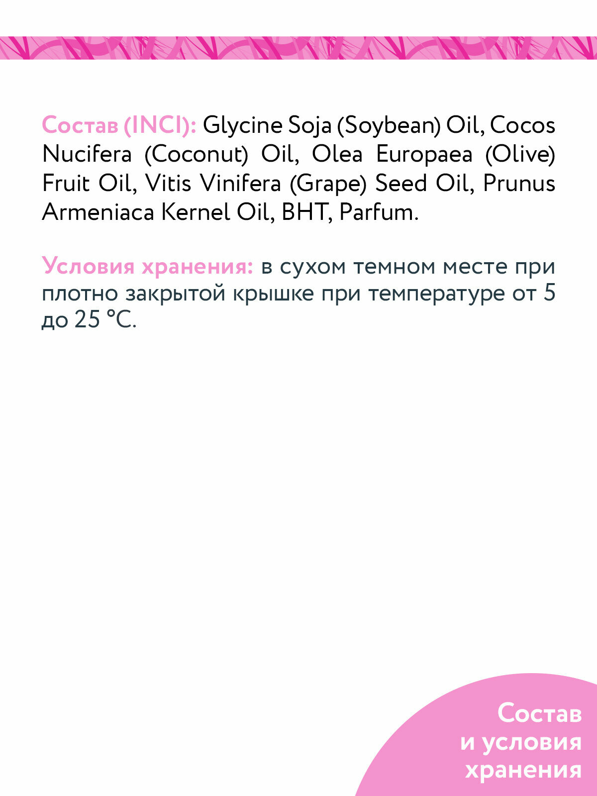 | Активный ингредиент | масло кокоса, масло косточек винограда, масло соевое, оливковое масло, масло абрикоса |