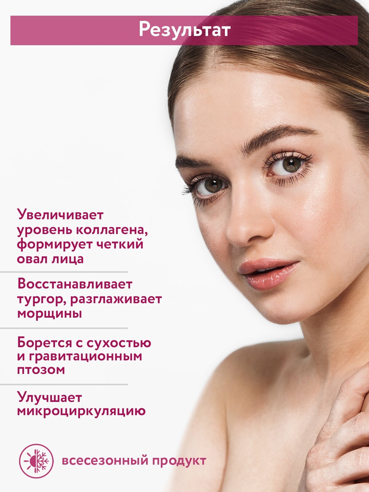 | Проблема | Мимические морщины, Изменение овала лица, Снижение плотности и упругости кожи |