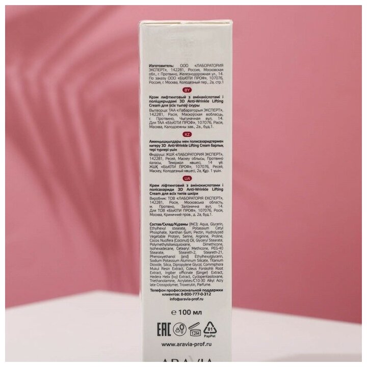 Aravia professional Крем лифтинговый с аминокислотами и полисахаридами 3D Anti-Wrinkle Lifting Cream 100 мл (Aravia professional ) (AR9005)