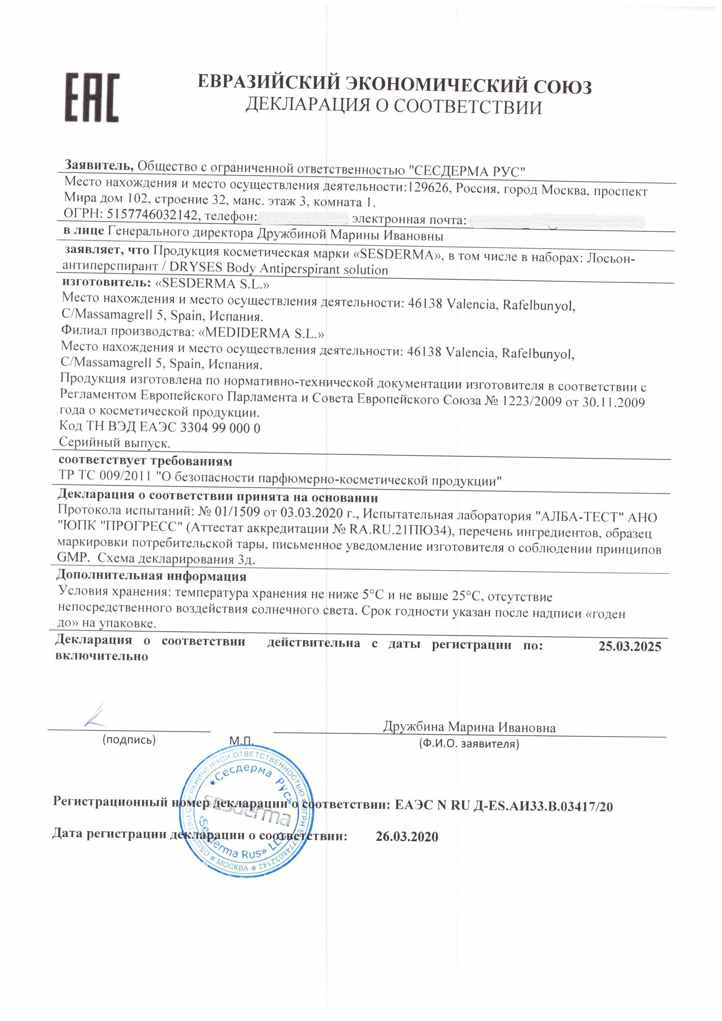 | Линия бренда | DRYSES - линия антиперспирантов |