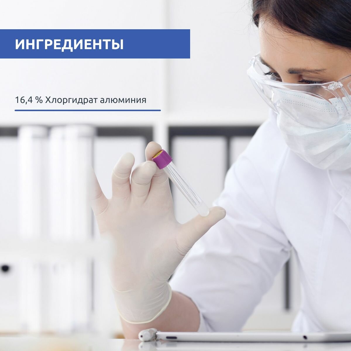 | Активные компоненты | хлоргидрат алюминия 16% - активный ингредиент против избыточного потоотделения и неприятного запаха тела. Блокирует работу потовых желез и образует слой кератина, препятствующего чрезмерному потоотделению. Обладает антисептическим, антимикробным, себостатическим действием, является антиперспирантом. Состав: aqua ,aluminum chlorohydrate ,alcohol denat ,propylene glycol ,phenoxyethanol ,ethylparaben ,methylparaben |