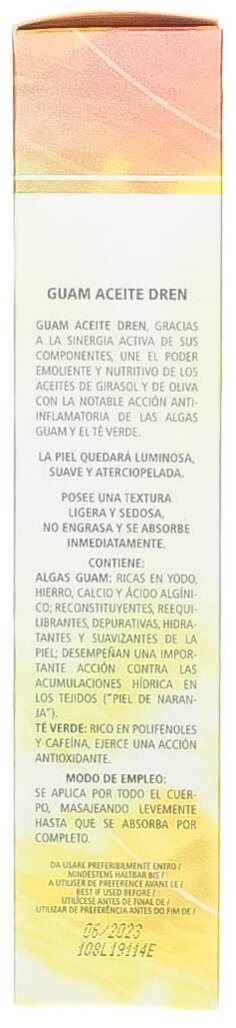 | Полное наименование | Масло GUAM Dren с дренажным эффектом для массажа 200 мл |