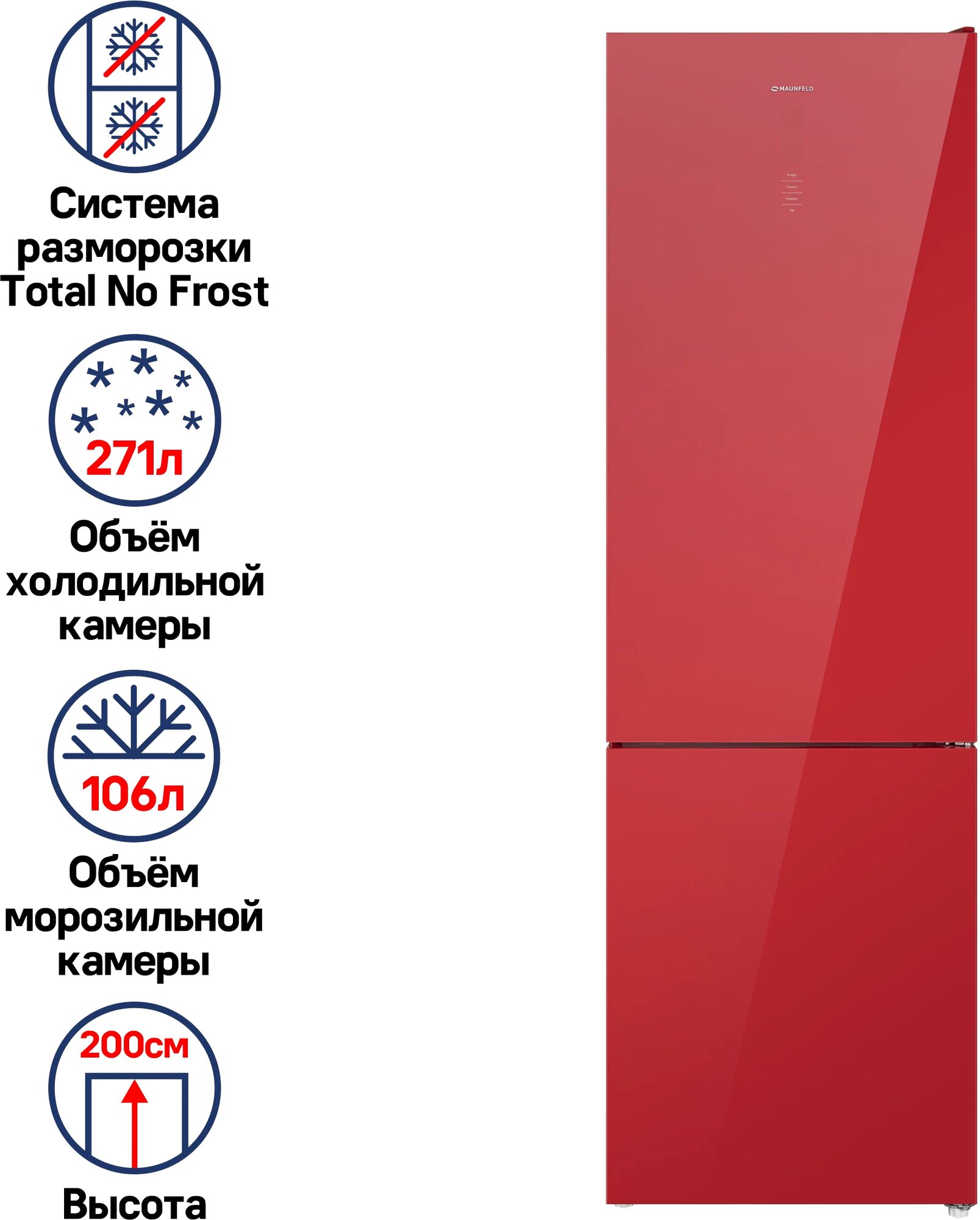 Холодильник MAUNFELD – украсит интерьер ярким дизайном! Система No Frost избавляет вас от необходимости постоянно размораживать морозильную камеру благодаря автоматической системе удаления инея. Вы сможете легко хранить множество свежих и замороженных продуктов, не опасаясь за нехватку места. Красивый дизайн поможет вписаться в любой интерьер. Пользоваться этим холодильником очень просто благодаря интуитивно понятной системе электронного управления.
