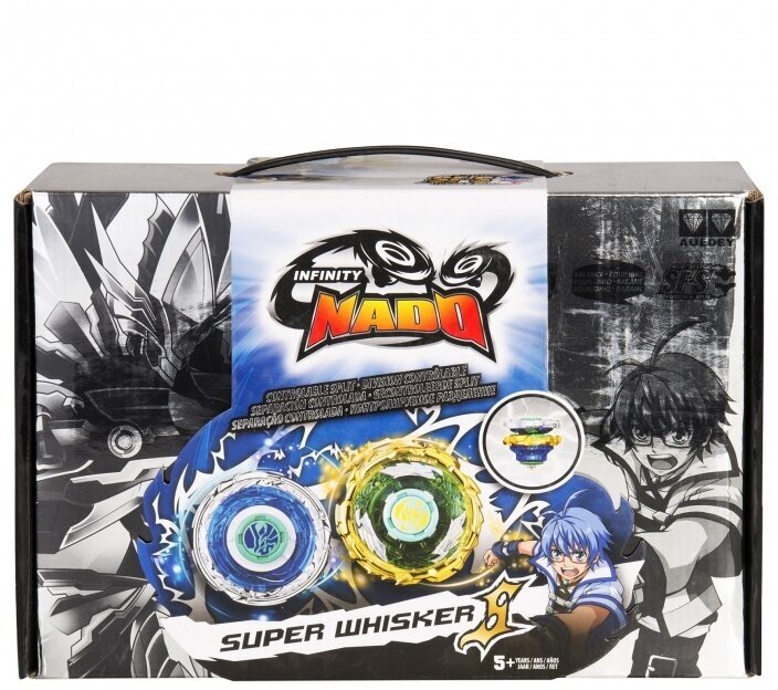Также в наборе: стартовое устройство черно-зеленого цвета, стартовый цепь, удобная рукоятка черно-красного цвета, ключ для сбора волчков, инструкция пользователя. Волчок поставляется в стильной серебристой упаковке. Волчок Infinity Nado способен побеждать бойцов отличной от Nado армии волчков.