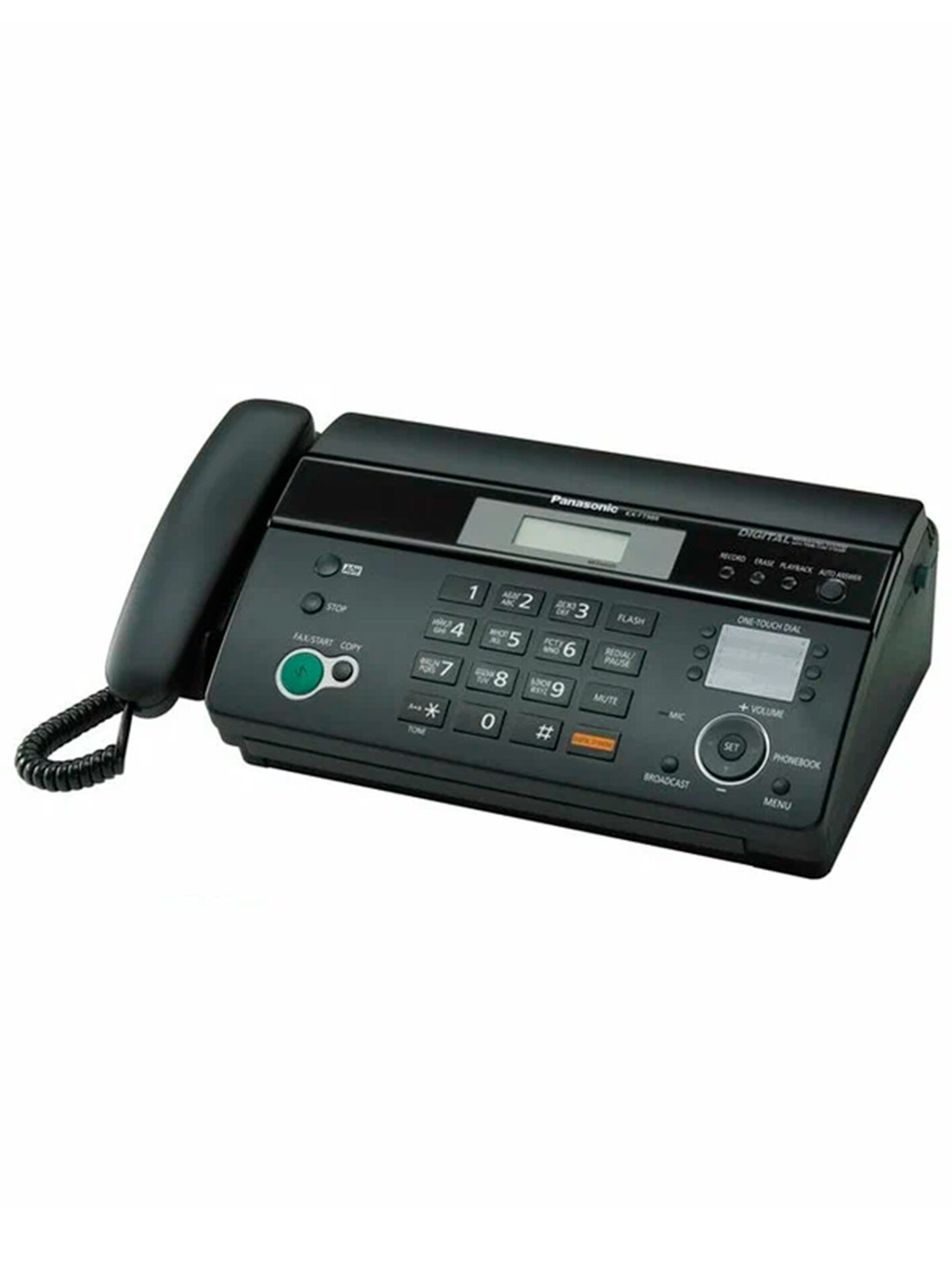 Факс Panasonic KX-FT988RU-B очень удобен в использовании благодаря наличию в нем двухстрочного ЖК-дисплея. Он обеспечивает быструю активацию специальных функций и простую навигацию в телефонной книге на 100 записей.