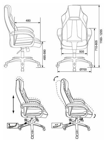 | Дополнительная информация | механизм качания с регулировкой под вес и возможностью фиксации в вертикальном положении, пластиковые подлокотники с мягкими накладками из искусственной кожи, пластиковые колеса, материал обивки текстиль/эко.кожа |