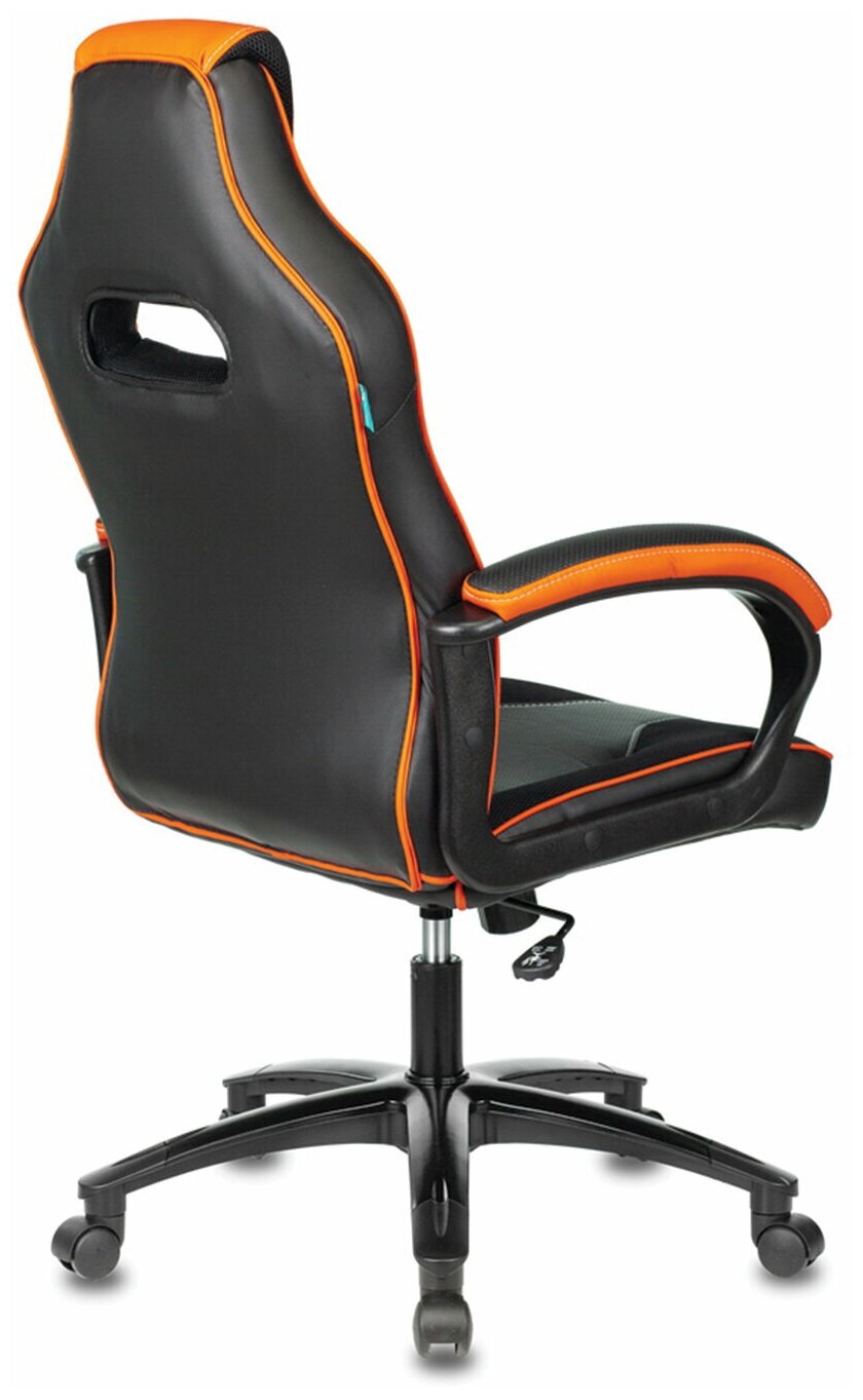 Стильная геймерская модель кресла, которая отлично подойдет для домашнего использования. Механизм качания с фиксацией в вертикальном положении. Регулировка жесткости качания приносит дополнительный комфорт. Надежный газлифт позволяет удобно регулировать высоту кресла согласно потребностям пользователя. Обивка кресла выполнена из искусственной кожи и ткани. Материал достаточно износостойкий, дышащий и в меру эластичный. Сиденье широкое и глубокое, в передней части плавно уходит вниз и не пережимает сосуды в ногах, что обеспечивает здоровье и максимальный комфорт при длительном использовании. Дизайн учитывает анатомические особенности человеческого тела, поэтому спинка изогнутая.