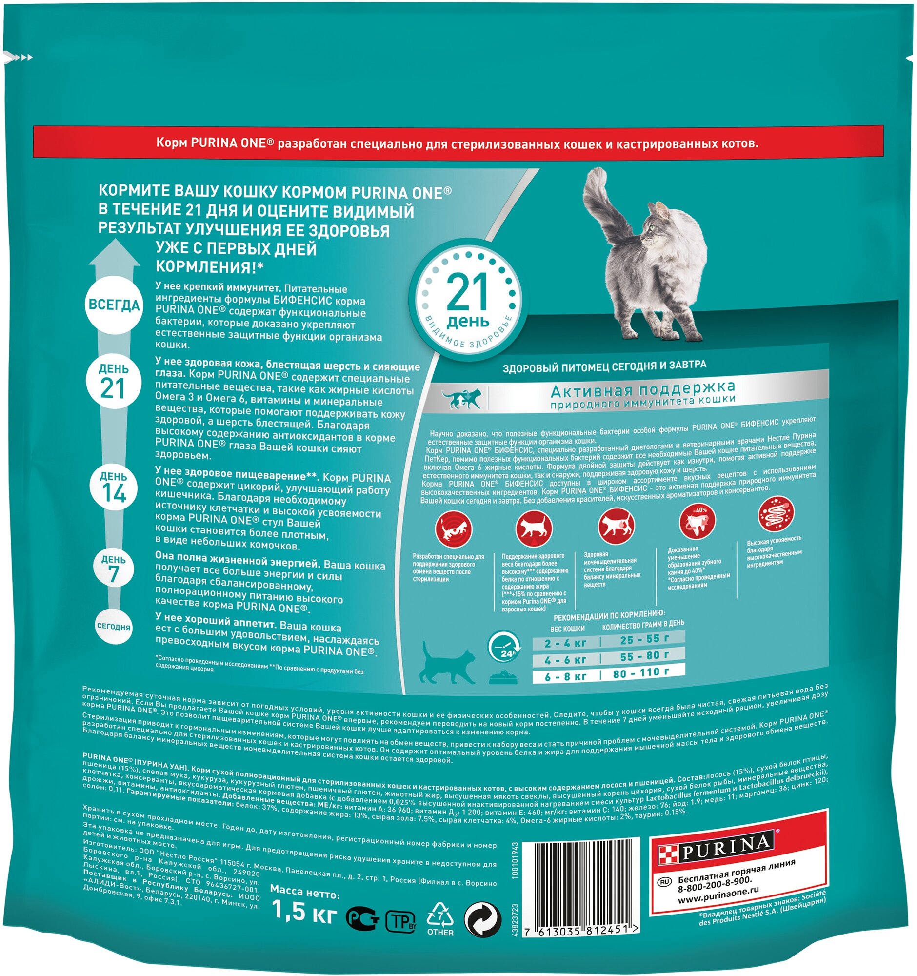Сухой корм для кошек Purina One Sterilized для стерилизованных с лососем и пшеницой 15 кг