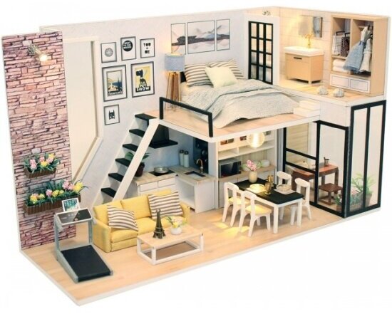 Современная студия обязательно придется по вкусу ценителям стиля и модных трендов. Mini House станет действительно прекрасным подарком. Это интересное времяпрепровождение не только для детей, но и для взрослых способствует развитию концентрации внимания и аккуратности. Сборка модели увлечет вас на многие часы.