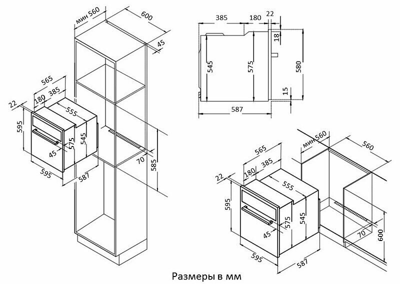 | Размеры ниши для встраивания (ВхШхГ) | 60 x 56 x 55 см |