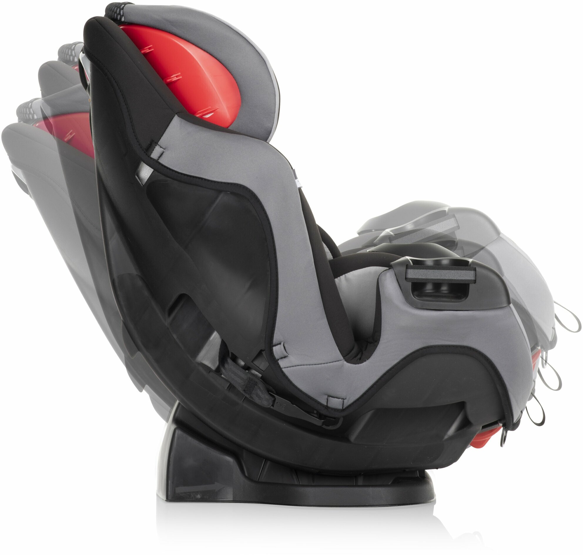 Технология защиты при перевороте (ROLLOVER TESTED)Американская компания Evenflo разработала и протестировала первое в мире детское автокресло с технологией защиты при переворачивании автомобиля.Подголовник SafeZone™ c 4-я технологическими слоями (пенополистирол, пенопласт с открытыми порами, этилвинилацет и компрессионный вспененный материал) для защиты головы ребенка.Цельный стальной каркас SafeGuard™ создает дополнительную прочность и надежно защищает периметр автокресла.Фирменная система крепления внутренних ремней SafeArmour™ рассеивает энергию удара, а также ограничивает движение головы и тела.Технология терморегуляции (Platinum protection series)Технология Outlast™ - запатентованная высокоэффективная ткань регулирует температуру тела ребенка, обеспечивая более спокойную и безопасную поездку.Технология Outlast™ - запатентованная ткань, используемая в высокоэффективной экипировке, поглощает как тепло, так и холод, сохраняя и выпуская их по мере необходимости.Материал Outlast™ позволяет быстро очистить не сильные загрязнения влажной губкой или салфеткой без применения очистителей.Новый эксклюзивный дизайн и отделка: новая обработка срезов, продуманное использование цвета, тисненная ткань, создающая эффект глубины и т.п.Технология боковой защиты (e3 energy cube)Трехслойный абсорбент ослабляет силу боковых ударов на 50%.Увеличенная боковая защита и инновационная технология безопасности e3 (energy cube).Длинные внутренние ремни для перевозки детей весом до 30 кг. Безопасность и комфорт перевозки в зимней одежде.Наличие дополнительного страховочного/якорного ремня.Основные особенностиLATCH™ - Механическая система крепления ISOFIX.Точная регулировка и максимальный угол наклона с положением для сна.Регулируемый по высоте подголовник.Infinite Slide Harness™ - эксклюзивная разработка Evenflo. Фиксация плечевых ремней в любом положении по высоте.Интегрированный подстаканник с обеих сторон.Раздельный съемный вкладыш для поддержки туловища и головы.Автомобильное кресло "все в одном". Используется для детей весом от 2,2 до 55 кг.Быстросъемный чехол EZ Off и съемная поддерживающая подушка рассчитаны на более 500 циклов машинной стирки.Допускается использование в воздушных судах.Детское автомобильное кресло # 1 по рейтингу авторитетного американского издания Consumer Reports.Разработано, протестировано и изготовлено в Соединенных Штатах Америки.Передовой продукт и упаковка.
