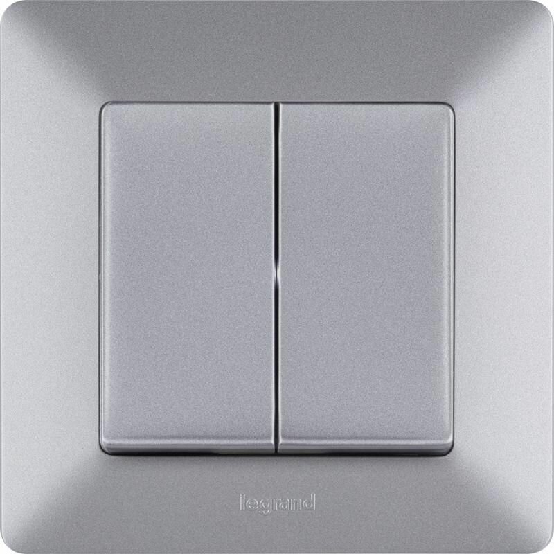 Valena Life 752608 Переключатель двухклавишный (10 А под рамку с/у алюминий) Legrand