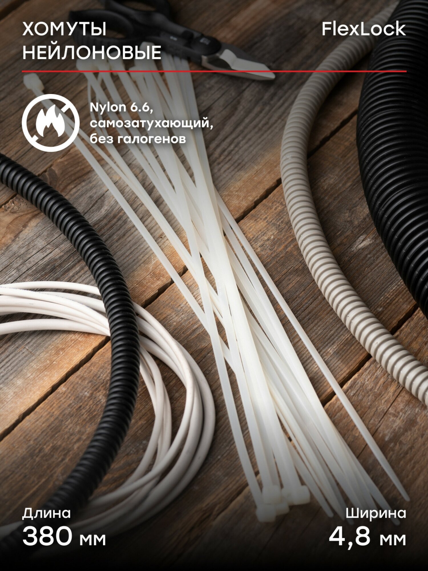 plc-fl-ctsw-4.8x380 Хомут P6.6 стандартный (б) 4.8x380 (100шт) FlexLock PROxima EKF