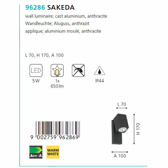 Сервис сравнения цен СкидкаГИД предлагает сравнить цены на товар «Уличный настенный светодиодный светильник Eglo Sakeda 96286»