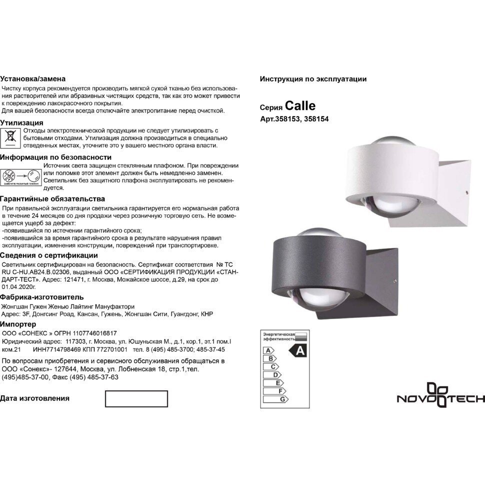 Уличный настенный светильник Calle Novotech CALLE 358154
