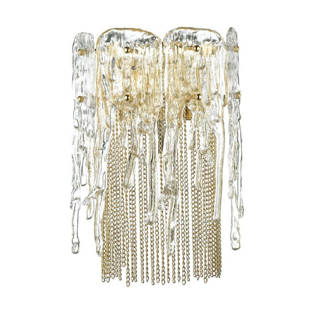 Прекрасная серия Ester - это сочетание художественного стекла и цепочек в цвет арматуры, которое придает моделям невероятную легкость и изящность. Прозрачные элементы из фигурного стекла образуют элегантный абажур, а цепочки, выполненные из высококачественного металла (не темнеет со временем), словно много — много длинных сережек переливаются в свете люстры или бра.