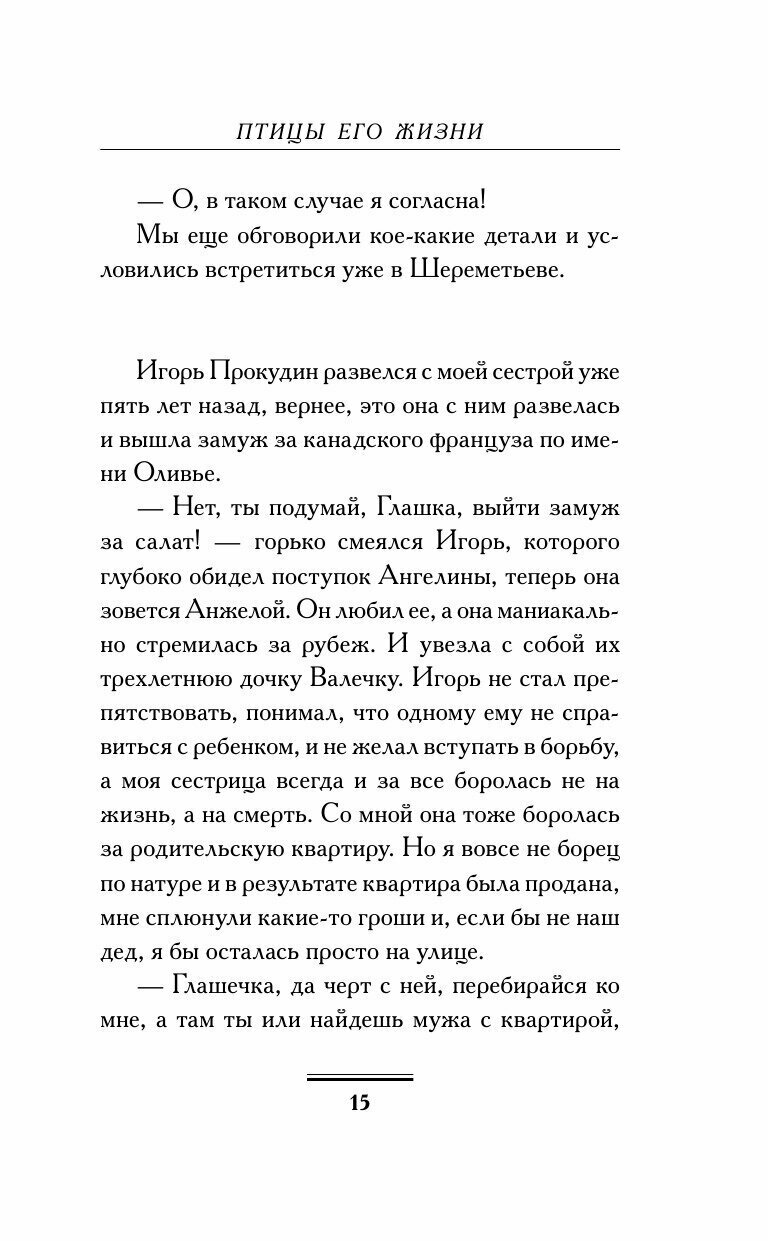 Книга небольшая, читается за день. Конечно, она уступает «Курице в полёте» или «Перевозбуждению примитивной личности», но в общем читабельна. Немного знакомы ориентиры романа, где то в творчестве автора встречались и повороты сюжета и обороты речи. Нельзя назвать захватывающим чтением, но скоротать время поможет.