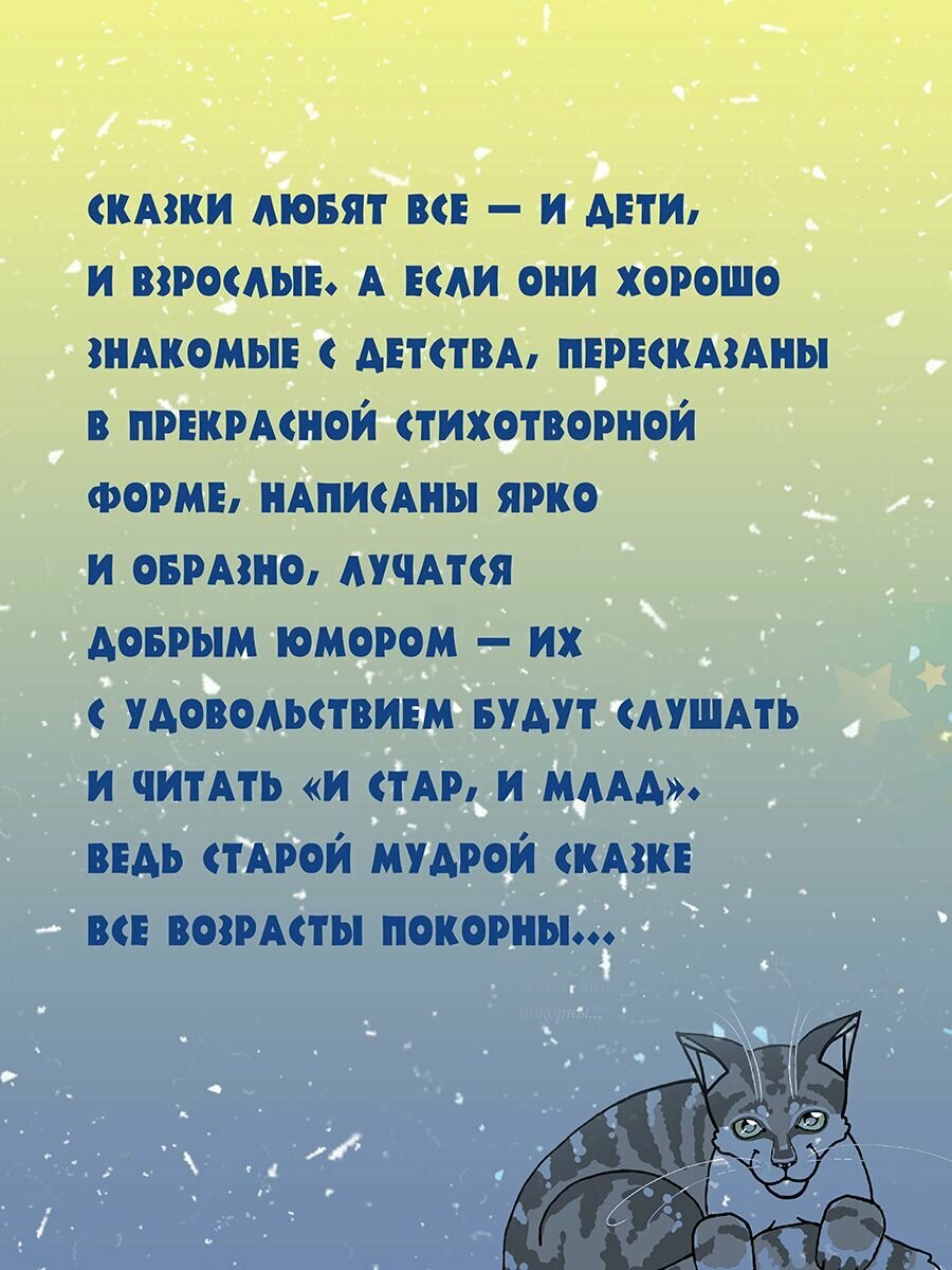 Сказки любят все - и дети, и взрослые. А если они, хорошо знакомые с детства, пересказаны в прекрасной стихотворной форме, написаны ярко и образно, лучатся добрым юмором - их с удовольствием будут слушать и читать "и стар, и млад". Ведь старой мудрой сказке все возрасты покорны...