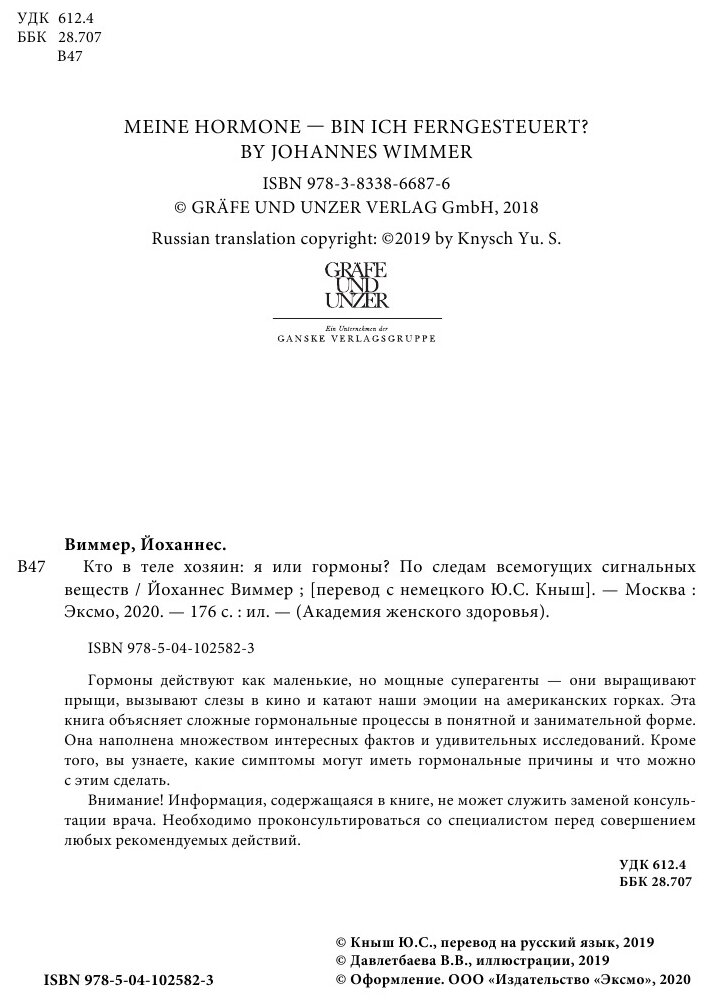Гормоны действуют как маленькие, но мощные суперагенты - они выращивают прыщи, вызывают слезы в кино и катают наши эмоции на американских горках. Эта книга объясняет сложные гормональные процессы в понятной и занимательной форме. Она наполнена множеством интересных фактов и удивительных исследований. Кроме того, вы узнаете, какие симптомы могут иметь гормональные причины и что можно с этим сделать.