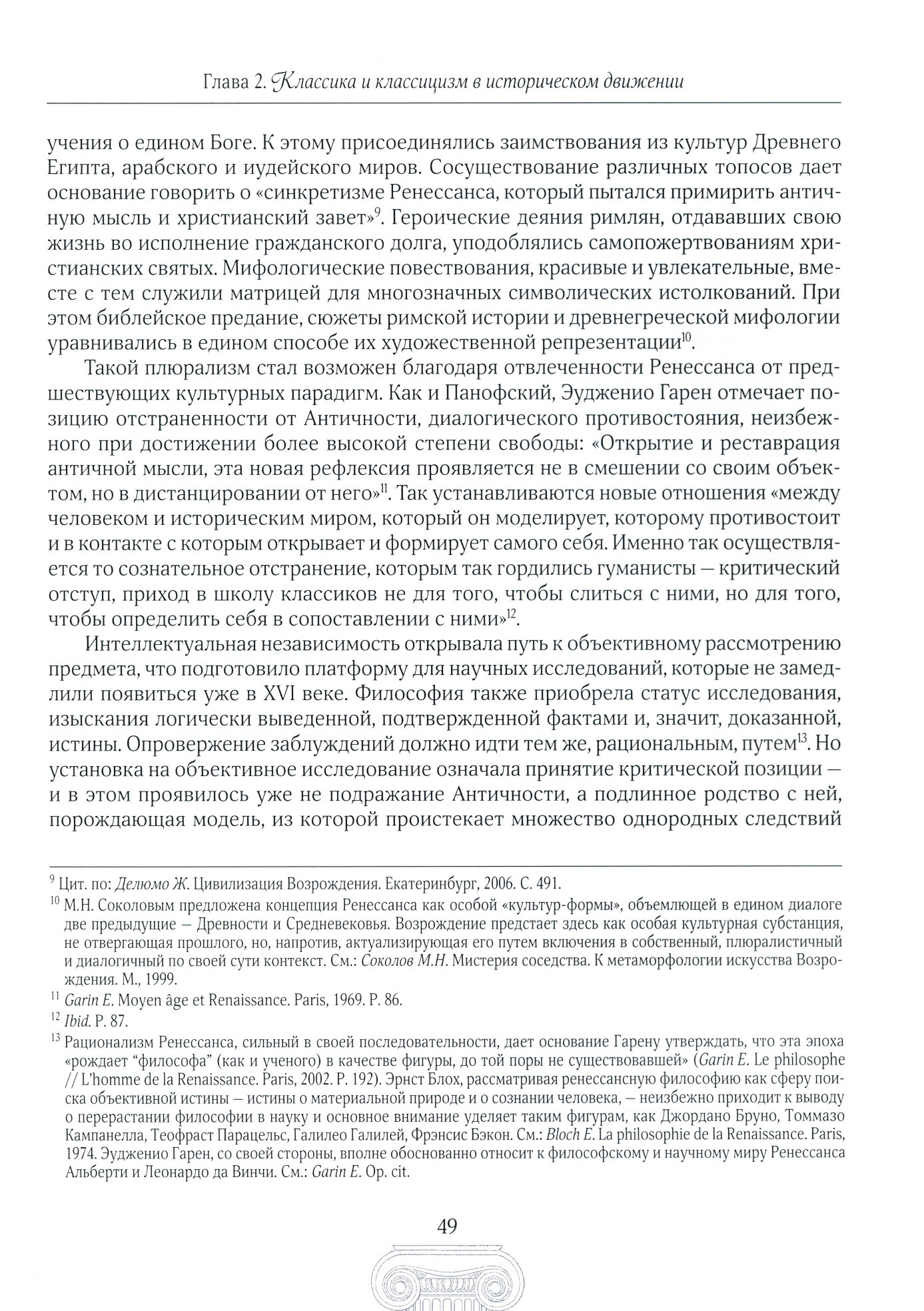 Однако отказ от непреложных истин, воплощенных в "совершенной" форме, по сути, означал возвращение к подлинно классическому мышлению, зародившемуся и вызревавшему в ситуации агона - открытой дискуссии, где в соревновании аргументов шел поиск истины. В этой атмосфере обсуждения, критического исследования сложилась культура Древней Греции, где были найдены художественные формы, признанные позднее классическими. Фактически тем же путем следовало искусство Ренессанса, достигшее вершин в миметических искусствах живописи и скульптуры. В предлагаемой работе показано, как отнюдь не в унисонном многоголосье, а входе противостояния позиций, подчас весьма острой полемики рождались классика и ее ответвления - классицизмы.