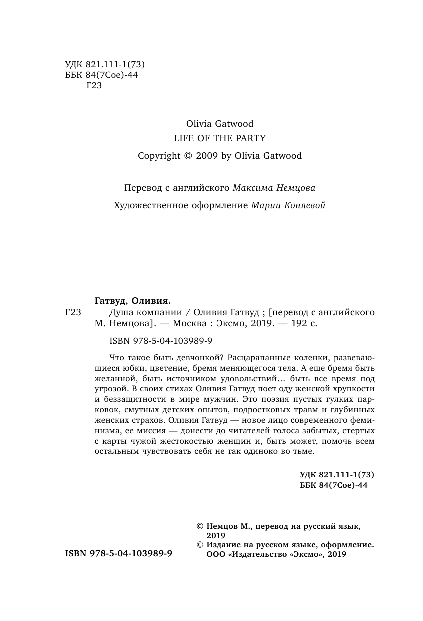 | Серия | Белые стихи. Дерзкая поэзия Оливии Гатвуд |