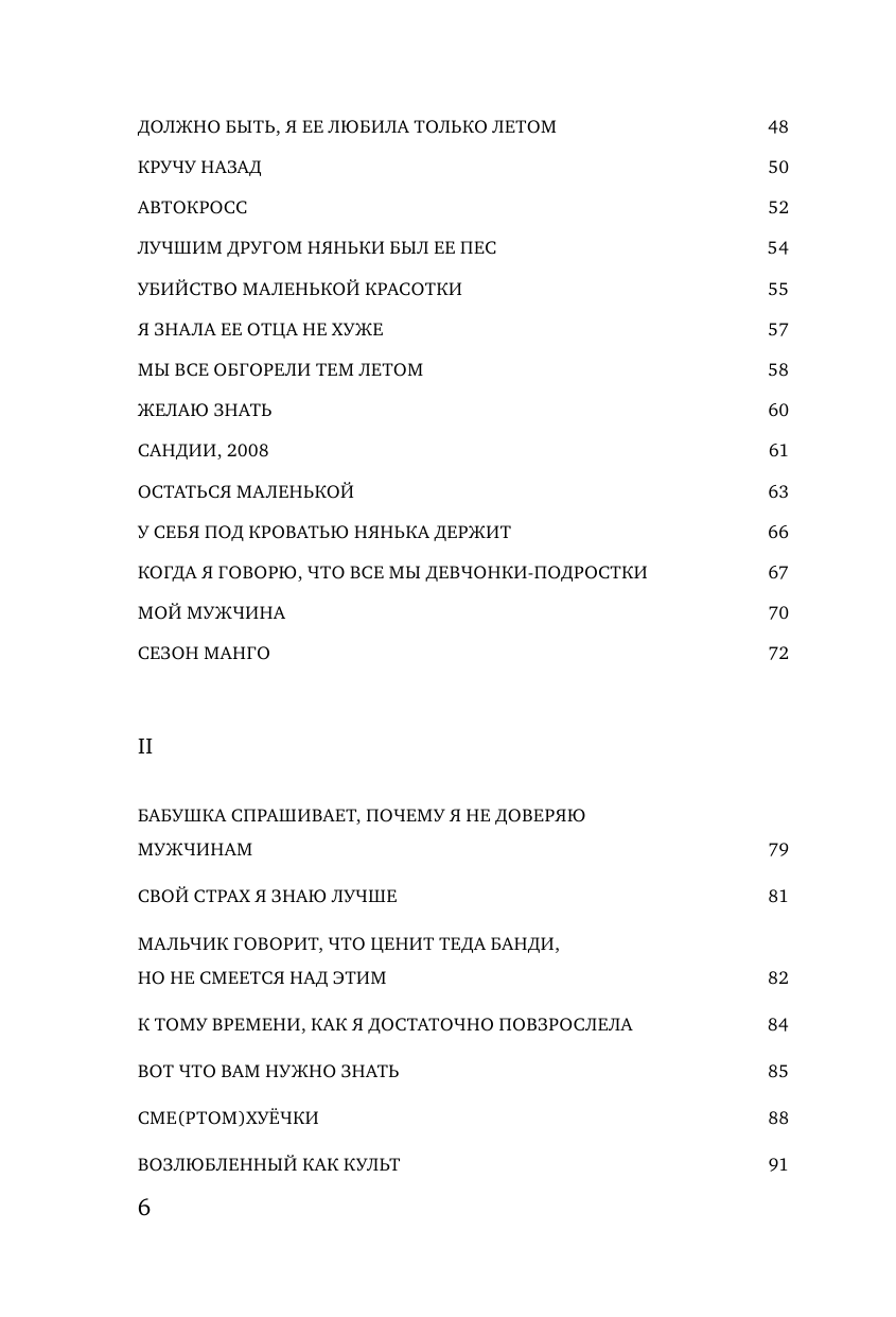 Что такое быть девчонкой? Расцарапанные коленки, развевающиеся юбки, цветение, бремя меняющегося тела. А еще бремя быть желанной, быть источником удовольствий… быть все время под угрозой. В своих стихах Оливия Гатвуд поет оду женской хрупкости и беззащитности в мире мужчин. Это поэзия пустых гулких парковок, смутных детских опытов, подростковых травм и глубинных женских страхов. Оливия Гатвуд - новое лицо современного феминизма, ее миссия - донести до читателей голоса забытых, стертых с карты чужой жестокостью женщин и, быть может, помочь всем остальным чувствовать себя не так одиноко во тьме.