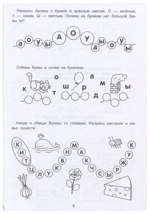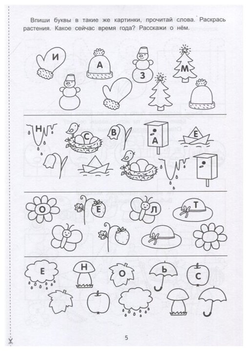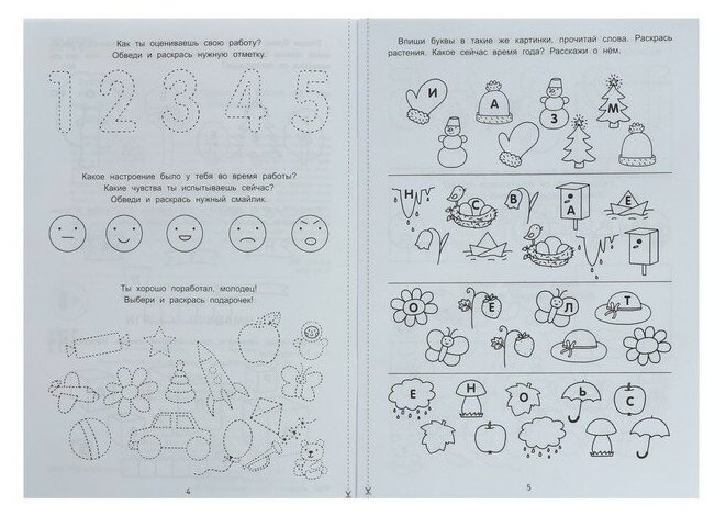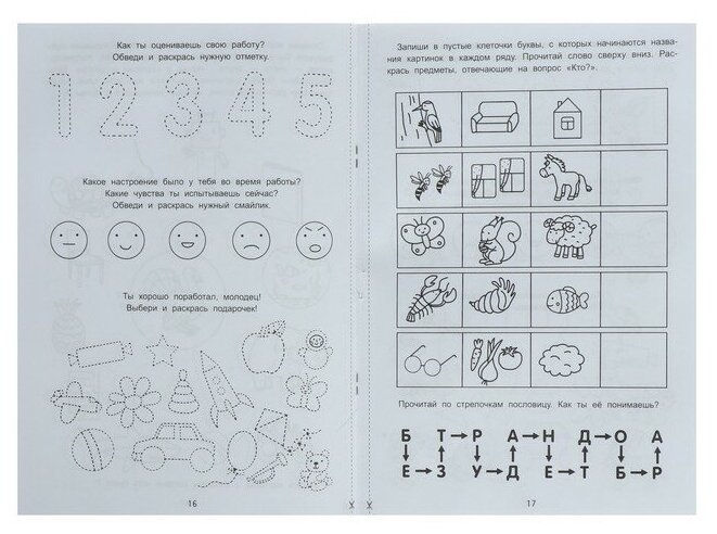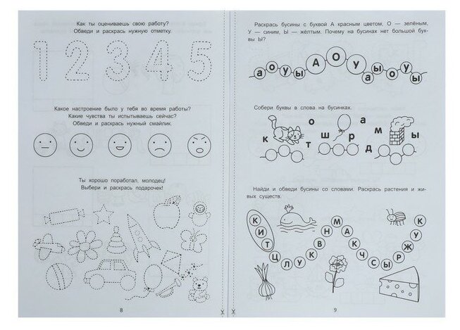 Уважаемые родители! Пособие направлено на закрепление знания букв, навыка чтения и письма, развитие внимания и логического мышления детей. Предлагая задания, родители помогут сформировать у ребёнка умение анализировать слово и выделять звуки/буквы. В игровой форме легко тренировать умение сравнивать и обобщать предметы и явления, строить умозаключения и делать выводы — это способствует развитию памяти, внимания, воображения, восприятия. Странички пособия удобно вырезать и предлагать ребёнку по одной. Задания можно дополнить различными упражнениями на сравнение и счёт предметов, поиск сходства и различия по форме, размеру, назначению. А ещё можно раскрашивать и придумывать истории, искать «живое/неживое», играть в звуковые игры, например, «С какого звука/слога начинается слово?». В конце занятия предлагайте ребёнку проанализировать и оценить свою работу. Для этого на каждом обороте страничек есть оценочно-эмоциональные рисунки, которые станут итогом выполненных заданий и дадут возможность ребёнку научиться оценивать собственный труд.