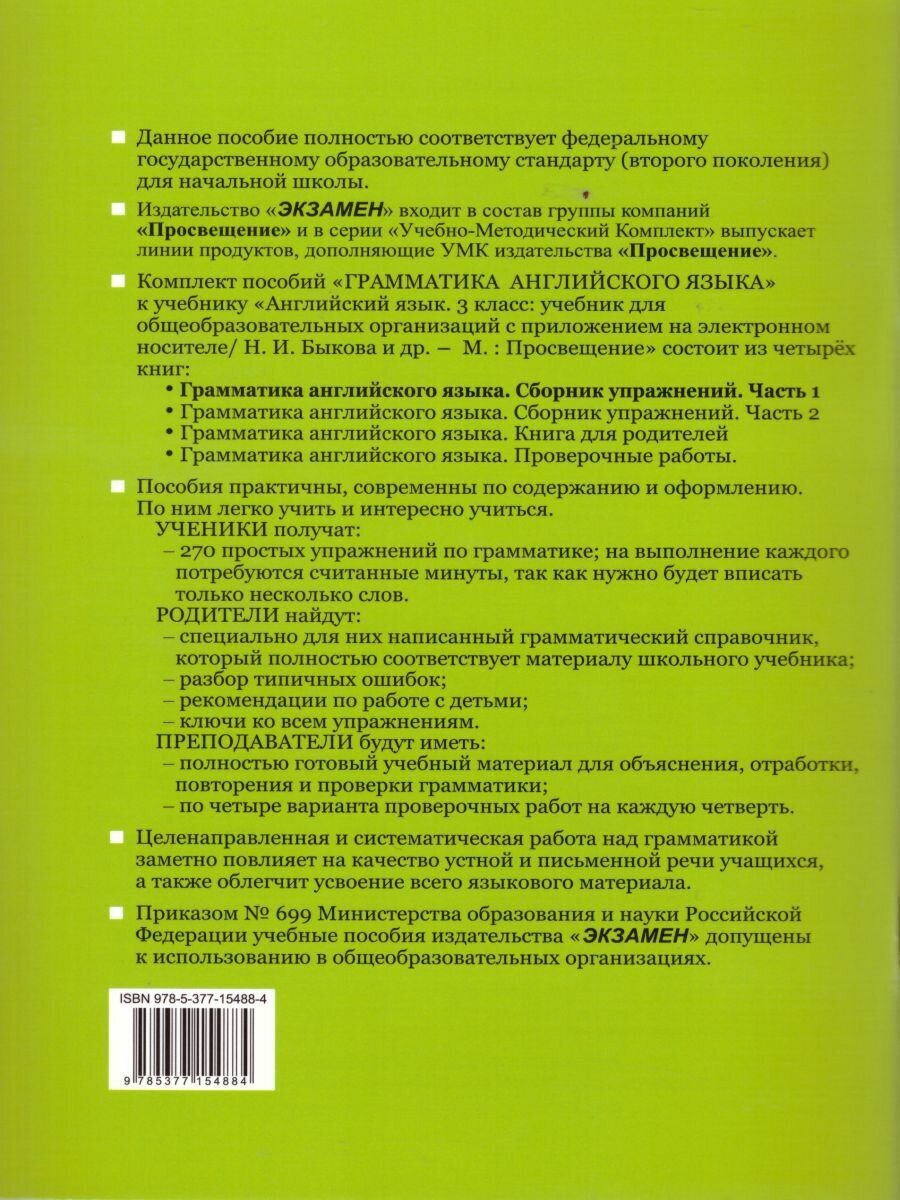 УМК.025н ГРАММ.АНГЛ.ЯЗ.СБ.УПР.К SPOTLIGHT 3 КЛ. БЫКОВА.Ч.1 ФГОС (к новому ФПУ) (Барашкова Елена Александровна); Экзамен Издательство, 2020