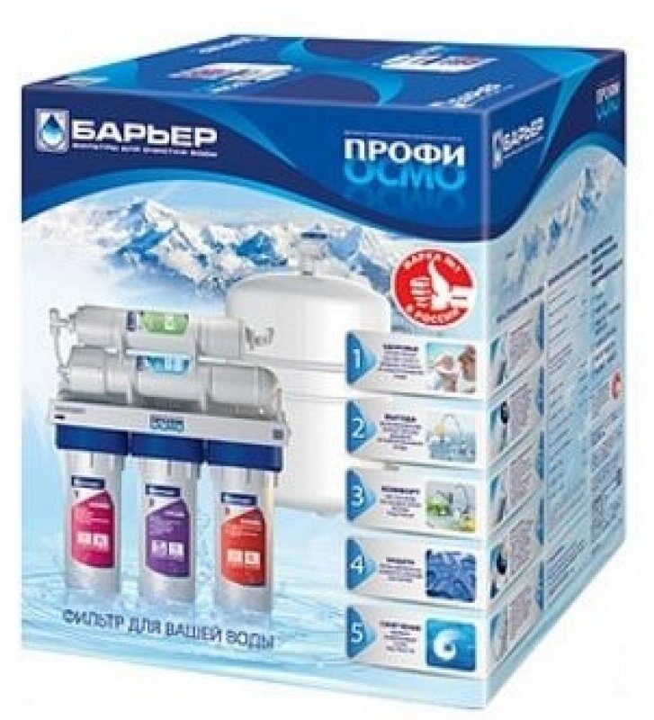 Водоочиститель Барьер является системой по очистки водных ресурсов, которая работает при помощи метода обратного осмоса. С данным агрегатом вода проходит 5 ступеней очистки, после которых становится кристально-чистой и умягченной.