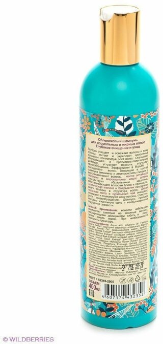 | Химический состав | Aqua with infusions of: Festuca Altaica Extract* (экстракт овсяницы алтайской), Argania Spinosa Kernel Oil* (марокканское масло арганы), Nepeta Sibirica Extract* (экстракт котовника сибирского), Sorbus Sibirica Extract* (экстракт рябины сибирской), Quercus Robur Bark Extract (экстракт дуба черешчатого), Rubus Idaeus Seed Extract *(экстракт арктической малины), Crataegus Monogina Flower Extract (экстракт боярышника), Dasiphora Fruticosa Extract (экстракт курильского чая), Mentha Piperita (Peppermint) Oil (масло дикой перечной мяты), Hippophae Rhamnoides Fruit Oil* (масло алтайской облепихи), Sodium Coco-Sulfate, Cocamidopropyl Betaine, Lauryl Glucoside, Climbaxole, Guar Hydroxypropyltrimonium Chloride, Panthenol, Retinyl Palmitate (витамин А), Riboflavin (витамин В2), Pyridoxine HCl (Витамин B6), Ascorbic Acid (витамин С), Hippophae Rhamnoidesamidopropyl Betaine, Benzyl Alcohol, Sodium Chloride, Benzoic Acid, Sorbic Acid, Citric Acid, Parfum. (*)-органические ингредиенты. |