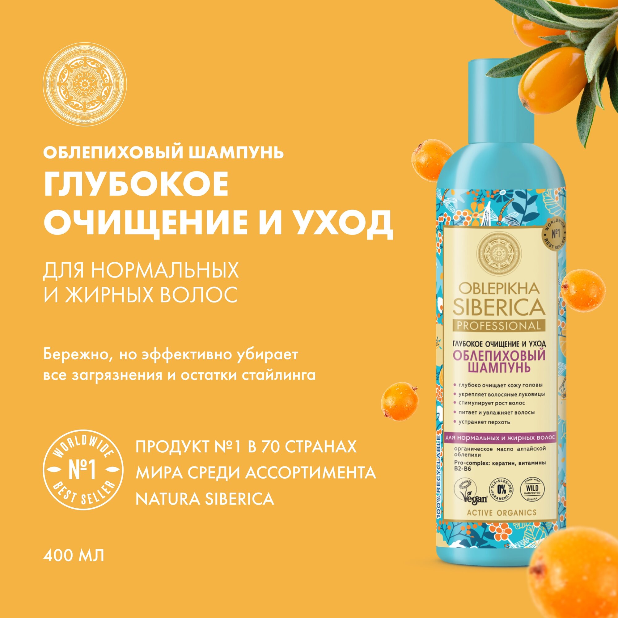 Natura Siberica Шампунь облепиховый для нормальных и жирных волос 500 мл (Natura Siberica ) (434394)