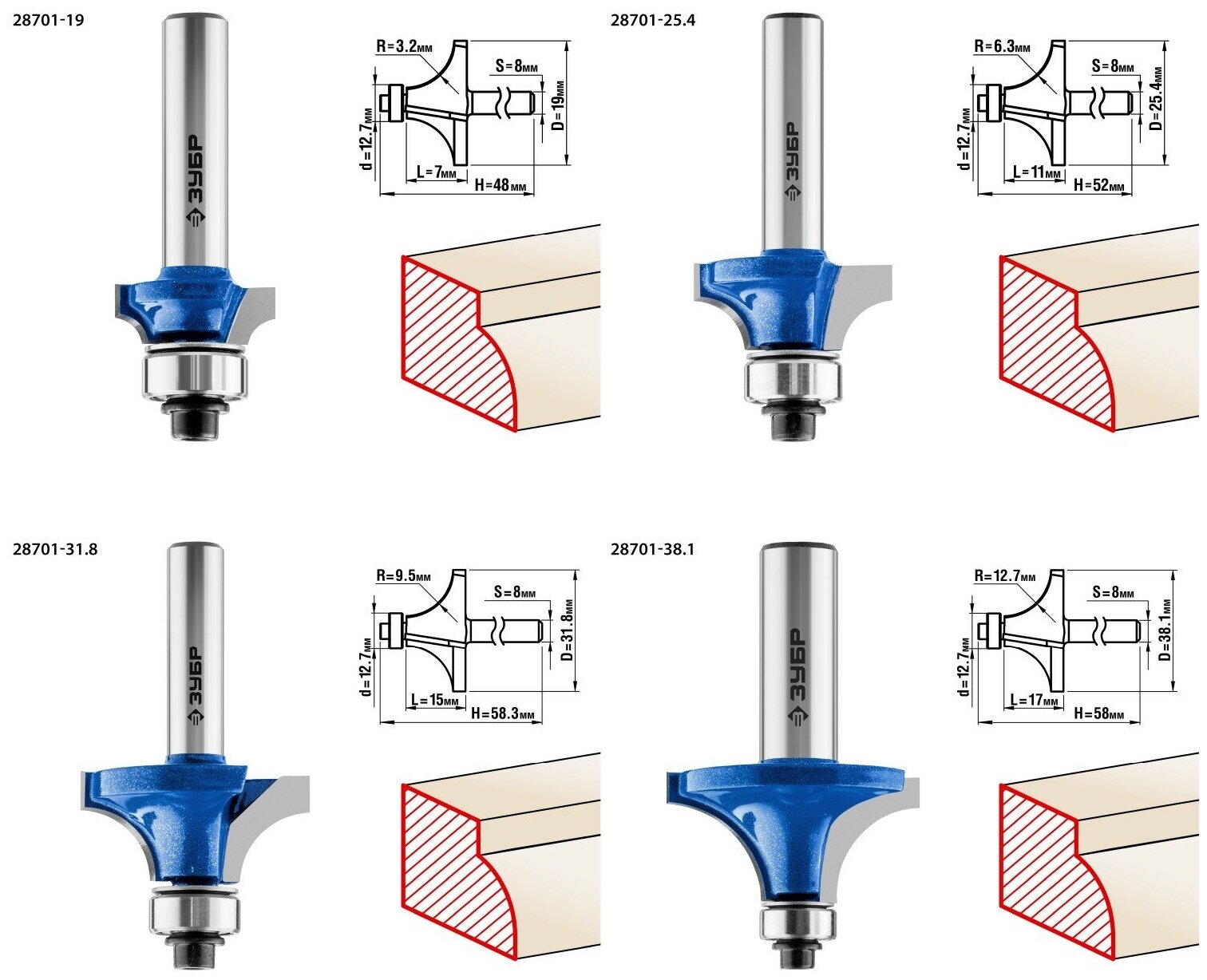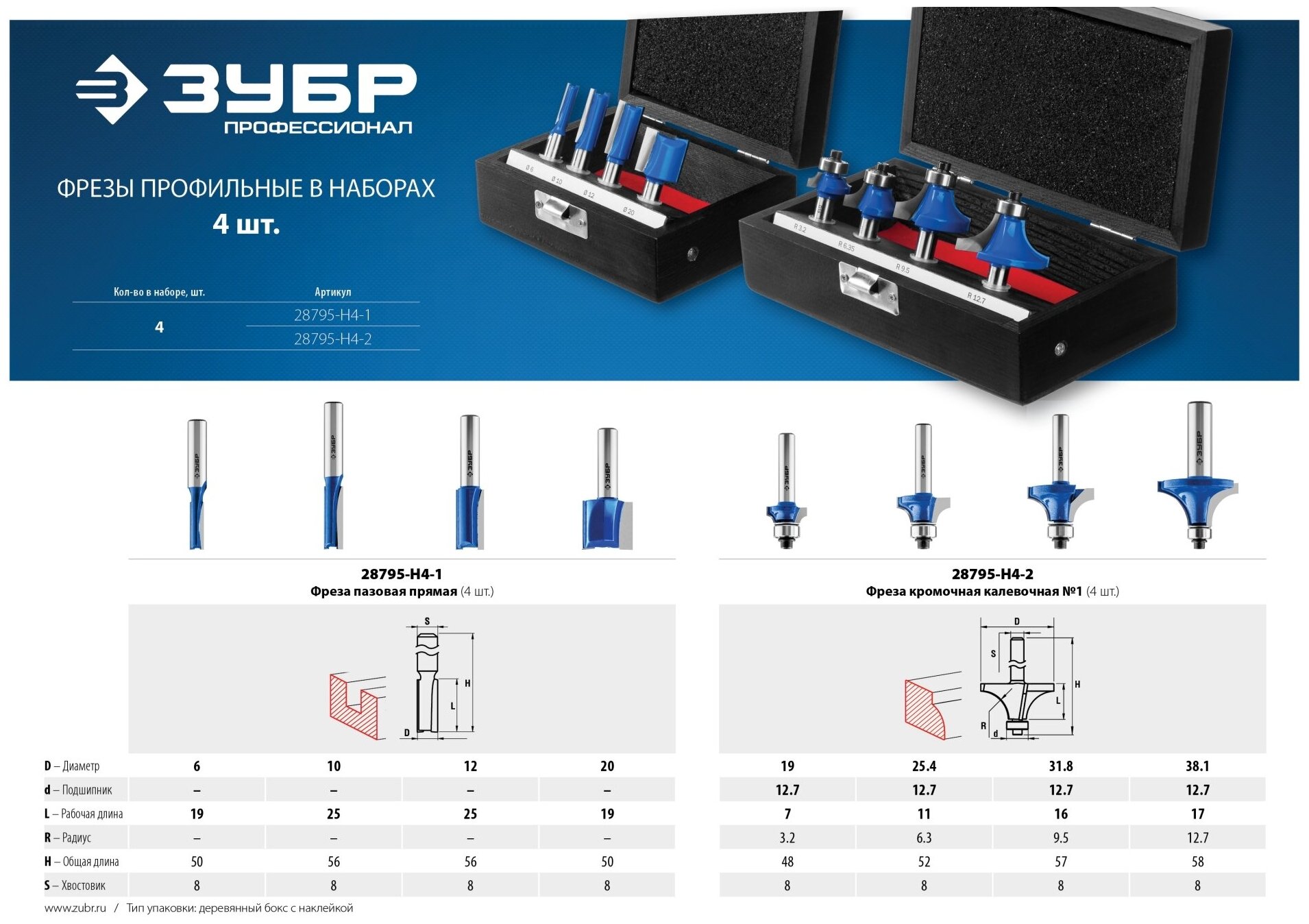 Набор фрез по дереву ЗУБР 28795-h4-2