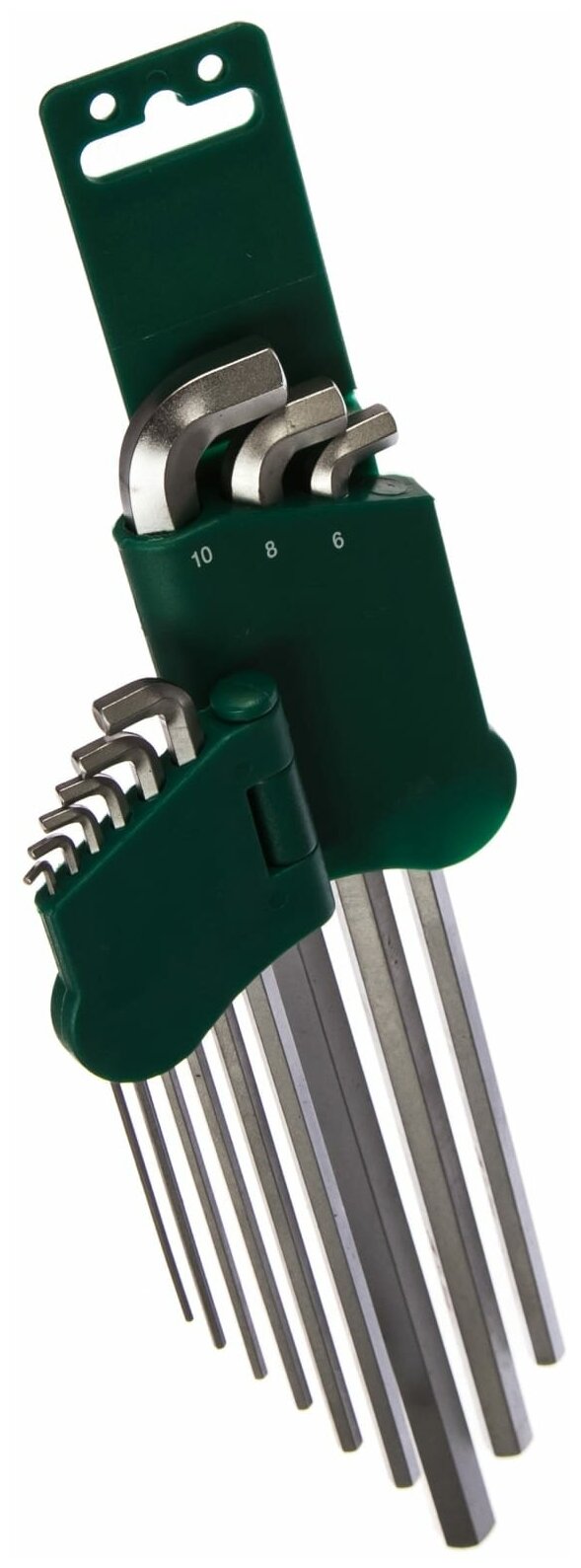 Набор торцевых шестигранных укороченных ключей Jonnesway состоит из 9 предметов и предназначен для работы с крепежом в труднодоступных местах.Преимущества Удобство использования: согнутый под углом 90° стержень с рабочими профилями одного размера на обоих концах обеспечивает удобство использования и возможность приложения значительных рабочих нагрузок Работа в труднодоступных местах: короткая сторона ключа позволяет работать в сложных и ограниченных пространствах, где длинные инструменты не подходят Прочность и долговечность: набор угловых шестигранников изготовлен из стали S2 и имеет матовое хромоникелевое покрытие, что гарантирует их прочность и долгий срок службы Универсальность: комплект подходит для работы с внутренним шестигранным профилем, что делает его незаменимым инструментом для различных задач