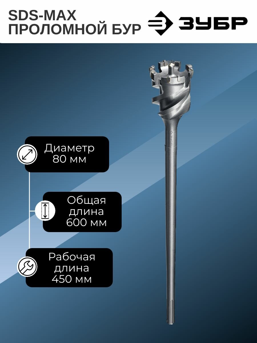ЗУБР Профессионал 80 х 500/600 мм, SDS-max проломной бур ()