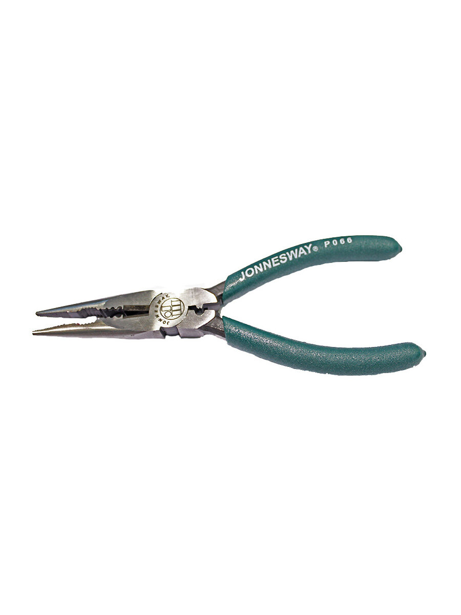 Утконосы JONNESWAY с удлиненными, утончающимися к концу губками полукруглого сечения и зоной в средней части губок, не имеющей насечки, применяемой для удержания обработанных плоских предметов, поверхность которых необходимо защитить от механических повреждений.